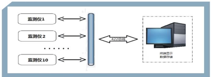雷安本地接地電阻智能監(jiān)測(cè)系統(tǒng)是通過(guò)將所有監(jiān)測(cè)儀數(shù)據(jù)打包通過(guò)422雙向通信總線上傳至PC機(jī)存儲(chǔ)、處理、查詢。此方式適合小于10個(gè)本地智能監(jiān)測(cè)點(diǎn)。其它大規(guī)模的監(jiān)測(cè)建議采用遠(yuǎn)程組網(wǎng)模式。