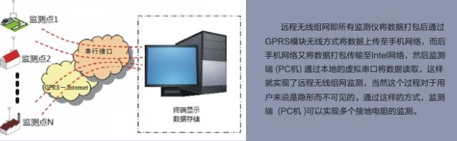 雷安遠(yuǎn)程無(wú)線接地電阻智能監(jiān)測(cè)系統(tǒng)是將所有監(jiān)測(cè)數(shù)據(jù)打包通過(guò)GPRS模塊無(wú)線方式將數(shù)據(jù)上傳至網(wǎng)絡(luò),監(jiān)測(cè)端通過(guò)虛擬端口將網(wǎng)絡(luò)數(shù)據(jù)讀取,這樣的遠(yuǎn)程無(wú)線監(jiān)測(cè)對(duì)用戶一說(shuō)是隱開(kāi)不可見(jiàn)的就象本地監(jiān)測(cè)一樣方便。各遠(yuǎn)程分端監(jiān)測(cè)點(diǎn)也可以將數(shù)據(jù)集中打包通過(guò)自建大功率基站上傳至監(jiān)測(cè)中心。